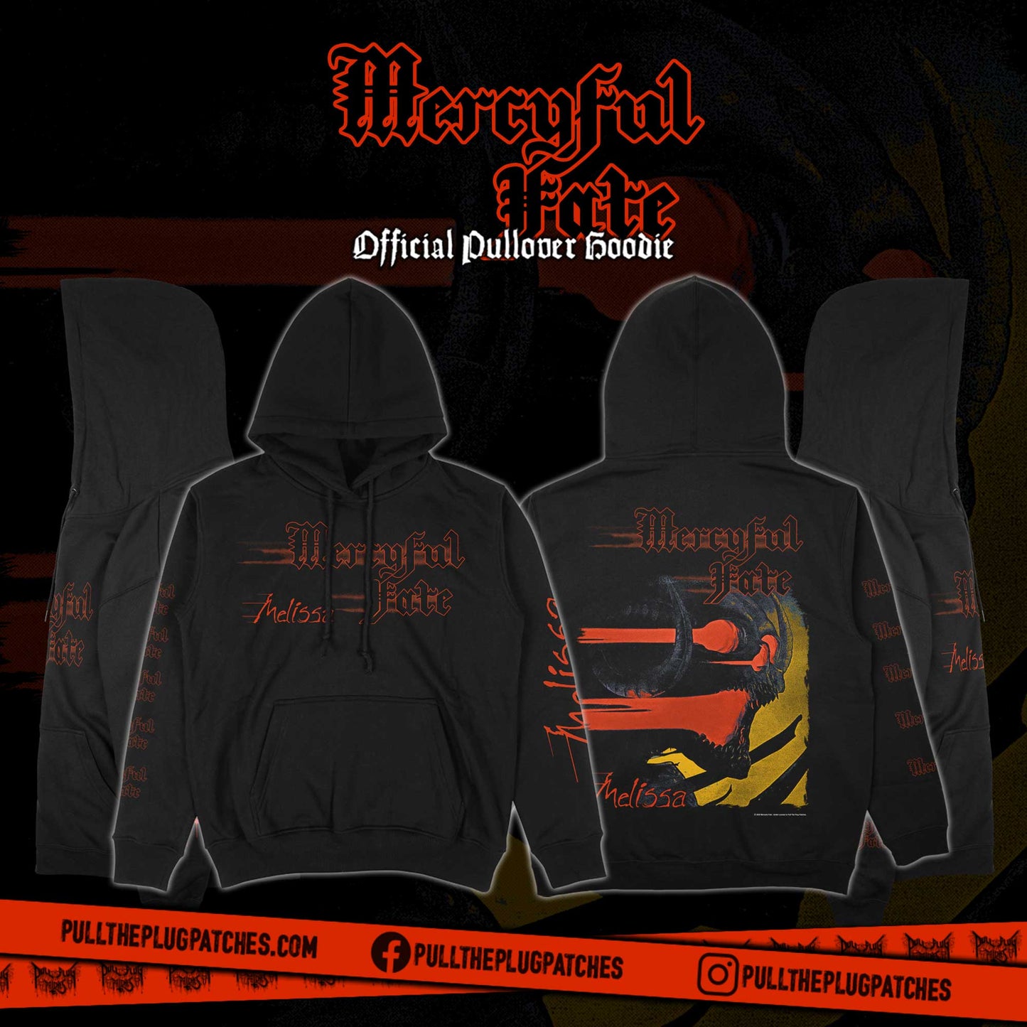 Officially licensed MERCYFUL FATE pullover hoodie.
